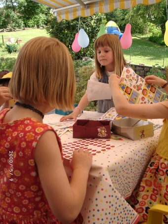 hier ging´s zu meiner Party:die ersten Gäste kommen, Mamas sind auch dabei!die Geburtstags-Kuchen kommen!die Gäste nehmen so langsam die Plätze ein, Opa kommt jetzt auch!es kann (endlich) los gehen!zwischendurch: einige Geschenke sind noch nicht ausgepackt...jetzt kommt Bewegung in die Sache!kleine Bastel-und Trink-Pause; wir bekleben unsere Geschenkkörbchen!jetzt kommen noch die Henkel an die Körbchen...